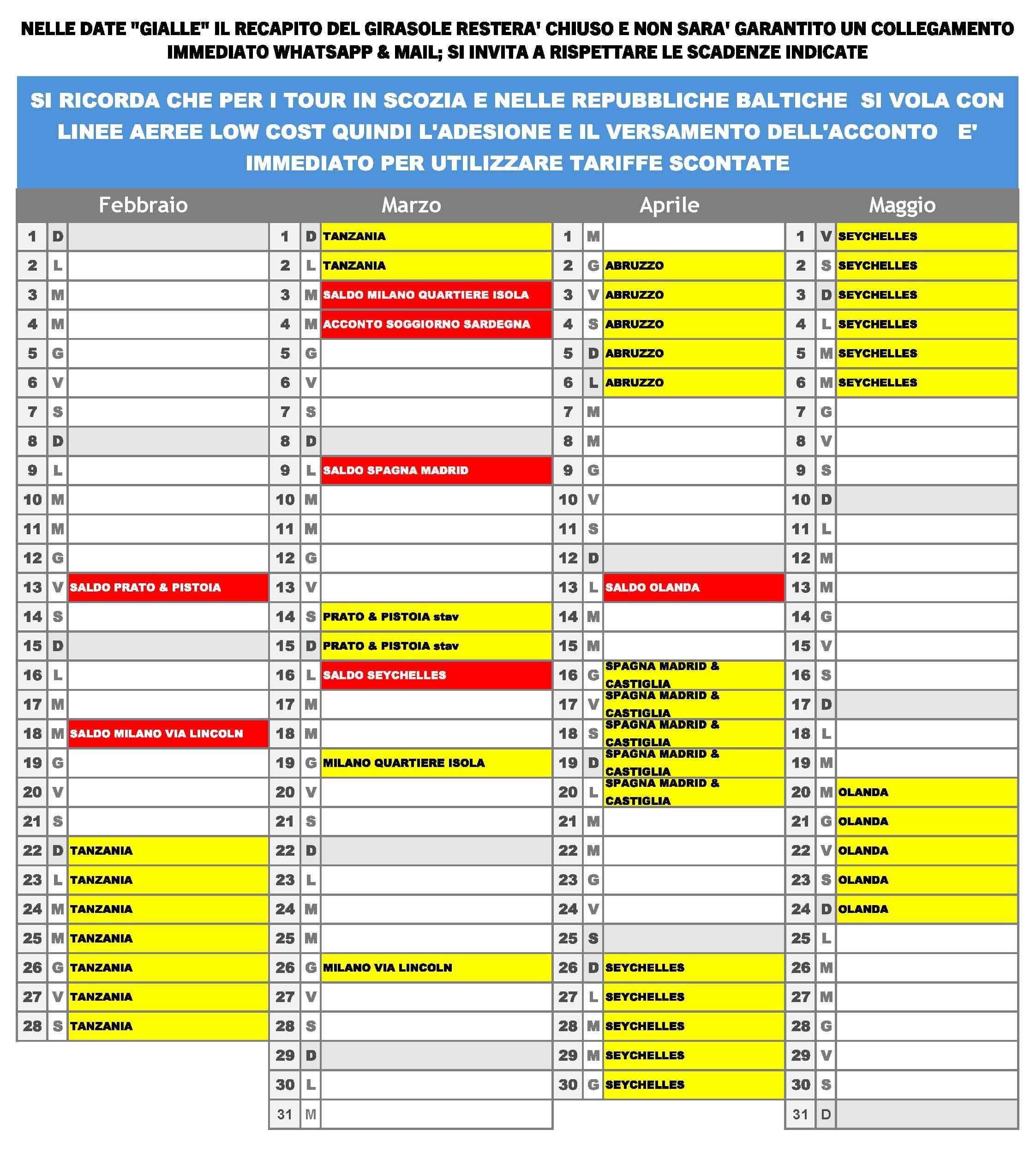 SCADENZE & CHIUSURE FEBBRAIO - MAGGIO 2026